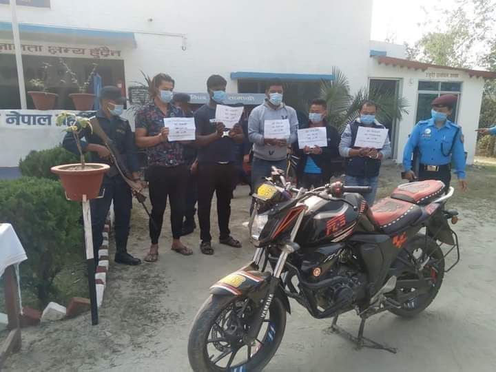 को ३६ प १०४० नम्बरको मोटरसाईकल गत भदौ २२ गते साँझ बेलबारी नगरपालिका ८ बाट हराएको थियो । चोरीमा संलग्न भएको आरोपमा पक्राउ परेका ५ जनालाई आईतबार इलाका प्रहरी कार्यालय बेलबारीले सार्वजनिक गरेको छ ।