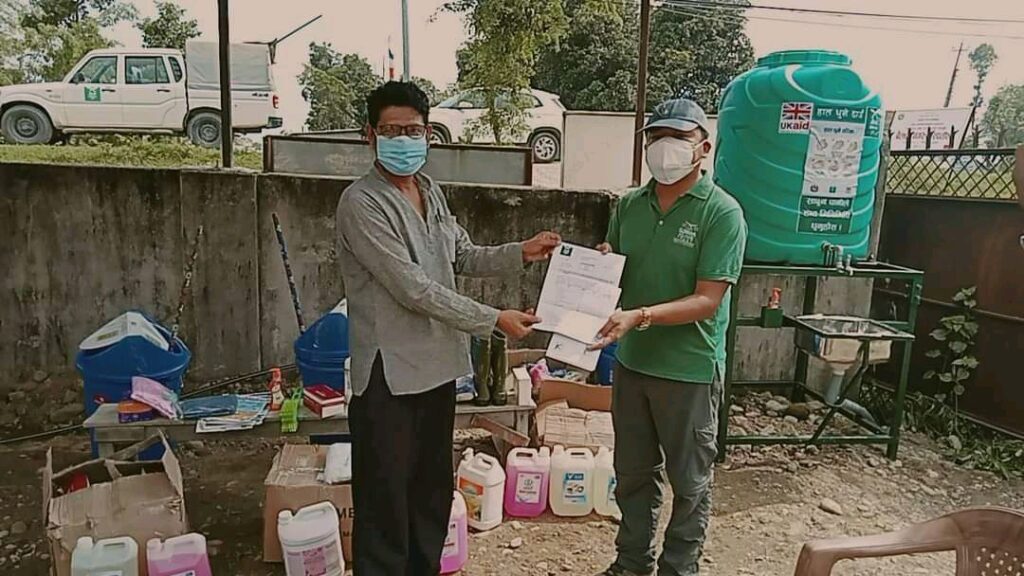गोर्खा वेल्फियर ट्रस्टले आधुनिक हातधुने ट्याङ्की, मास्क, हेन्ड सेनिटाइजर, डस्बिन, पिपिई, सफाइकर्मिको लागि जुत्ता, फिनेल, लगायतका स्वास्थ्य सामाग्री हस्तान्तरण गरेको हो।