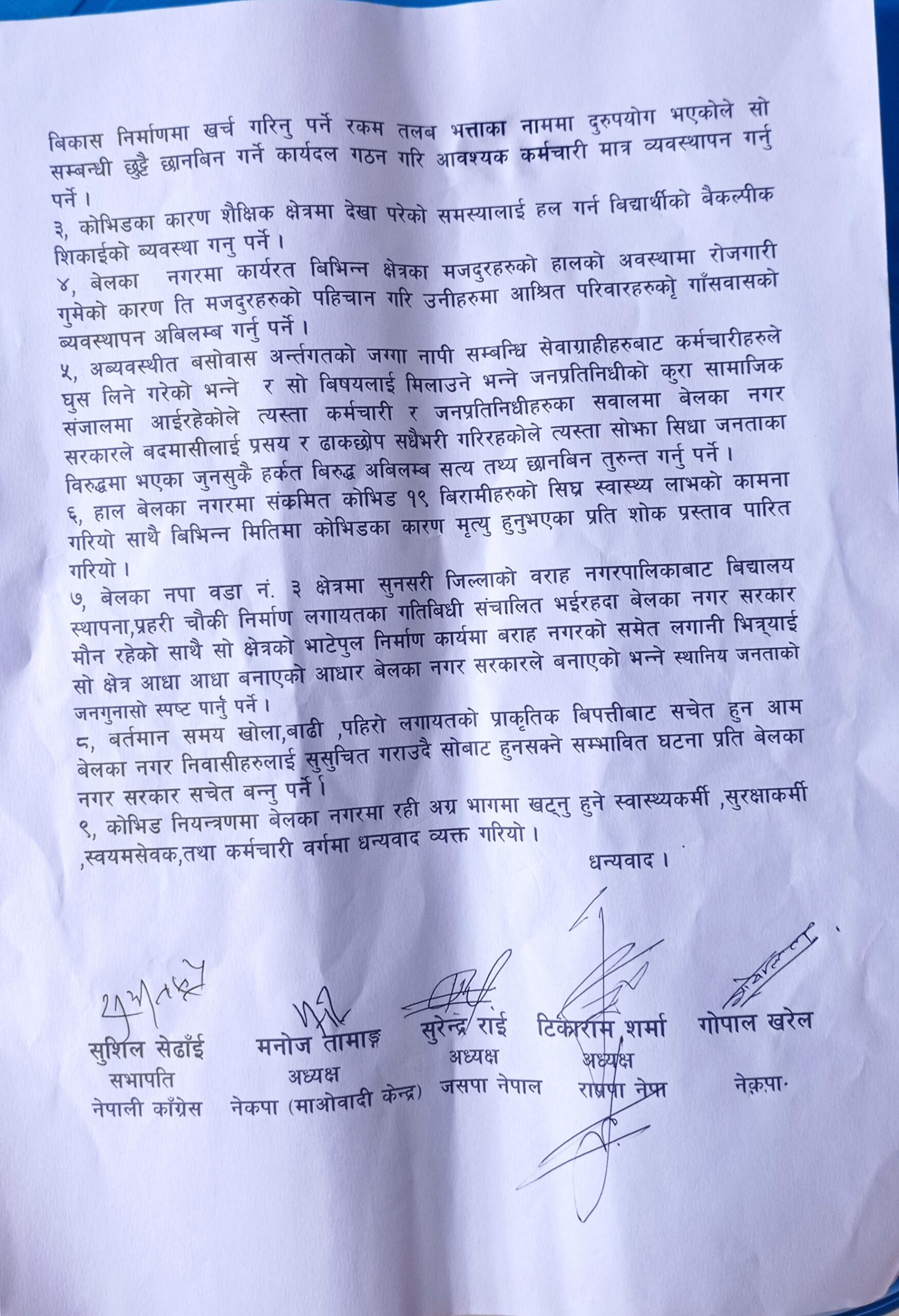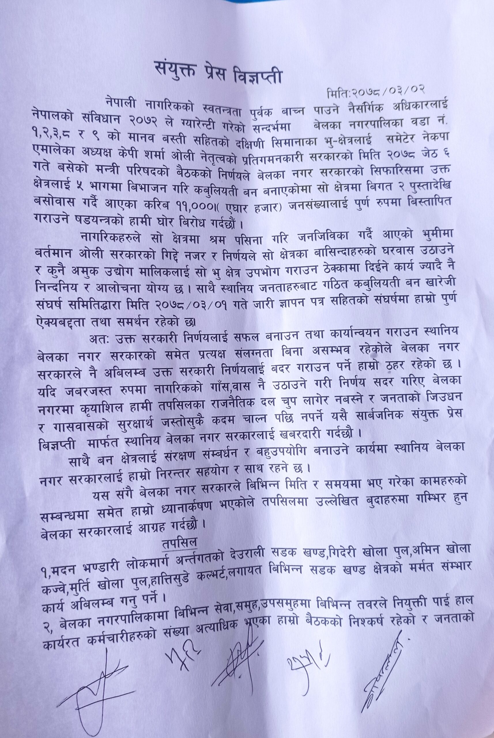 बेलका नगरपालिकामा एमाले बाहेकको राजनीतिक दलले उक्त आन्दोलनमा एक्यवद्धता जनाएको छ्न भने बेलका नगरपालिकाका प्रमुख दुर्गा कुमार थापाले पनि उक्त ठाउमा कबुलियत बन नबनाउने बरु सरकारले गरेको निर्णय विरुद्ध अदालत जाने जनताकै पक्षमा रहेको बताएको छ्न !