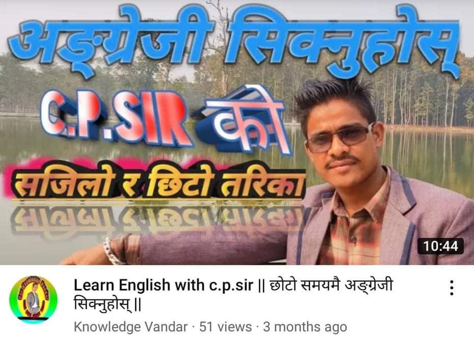 मनोज पान्डे/ बेलका नगरपालीका वार्ड न -८ निवासी चन्द्र बहादुर पौडेल (cp sir)ले यु ट्युब को माध्यम बाट अङ्रेजी सिकाउदै आएका छन।