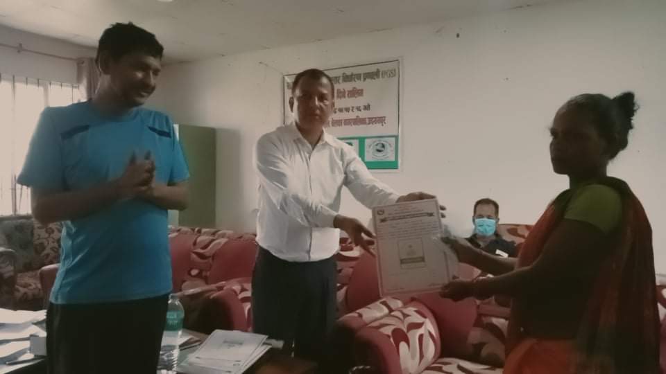 नगरसभा हलमा आयोजना गरिएको पि जि एस सम्बन्धी ३ दिने तालिम समापन गर्दै नगर प्रमुख दुर्गा कुमार थापा, उप प्रमुख राज कुमारी चौधरि र प्रमुख प्रशासकीय अधिकृत अर्जुन निरौलाले आर्गनिक कृषि सामाग्री उत्पादन गर्ने किसानलाई प्रमाणपत्र हस्तान्तरण गरेका छन।