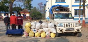 को १ ज २७६१ नम्बरको महेन्द्र बोलेरमा लियाउदै गर्दा १६ वटा बोरामा प्याक गरिएको गाजा पक्राउ गरेको हो । गाजा सहित नगद ६३,०२५ तिरसट्ठी हजार पच्चीस रुपैया र ४ थान विभिन्न मोडेलका मोबाइल बरामद भएको हो ।