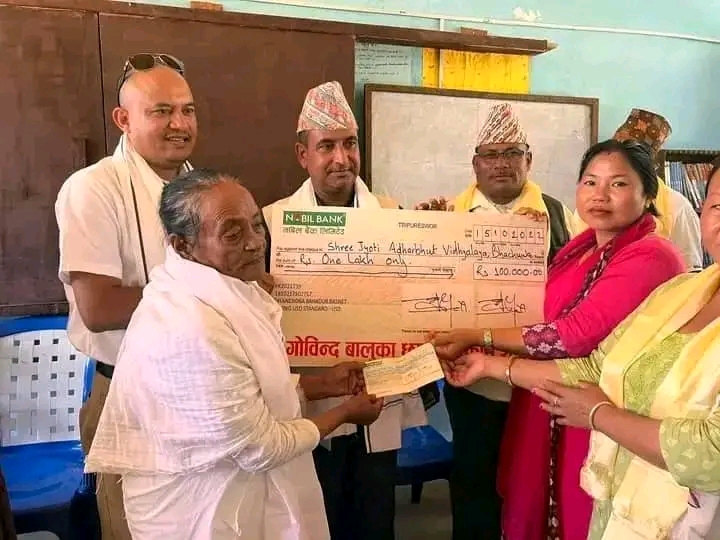 बस्नेतले स्थिानिय विद्यालय श्री ज्योति आधारभुत विद्यालयलाई आइतवार उक्त रकम दिएका हुन् ।